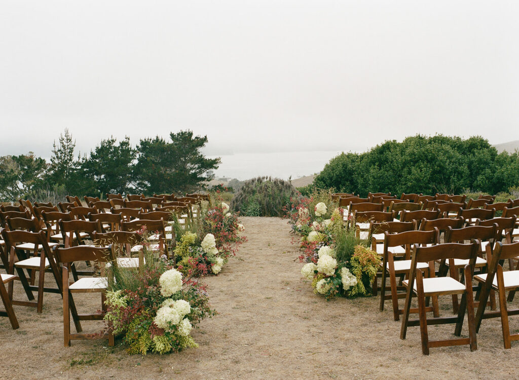 Guests walked up from the lodge to the ceremony site, where the view opens up across the bay and surrounding coastline. The setting is simple but striking, and it creates a natural focal point for the ceremony and for portraits afterwards! Could not get enough of this view, truly.