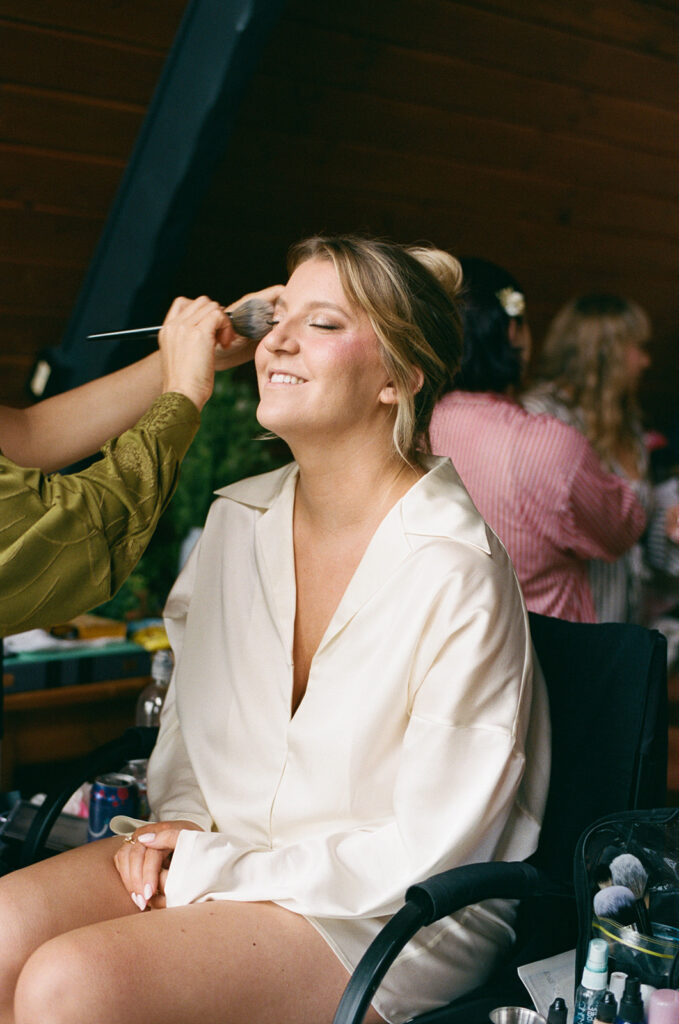 The A-frame on the property was where Hannah & Rian got ready for their wedding, the space was so thoughtfully designed and had amazing natural light (photographers dream). One of my favorite features is how the property allows different parts of the wedding to happen in different locations without anyone needing to leave the venue. Hannah and Rian were able to host their rehearsal dinner, ceremony, cocktail hour, reception, and after party all within the Lodge at Marconi grounds.